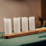 Denna mångsidiga och eleganta avlånga ljushållare är gjord av limmad ek och har plats för fyra blockljus med en diameter på upp till Ø6 cm. Det kan enkelt användas som adventsljus till jul, men passar även perfekt för de mörkare tiderna på året då man vill ha lite extra mys i hemmet.