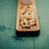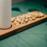 I ena änden hittar du ett litet fack som kan fyllas med allt från valnötter och godis till ett salt- och pepparset eller andra småsaker – detta gör ljusstaken både funktionell och dekorativ på middagsbordet eller i vardagsrummet. Den oljade ytan framhäver ekens naturliga struktur och varma glöd, vilket gör den till ett elegant tillskott i alla hem.