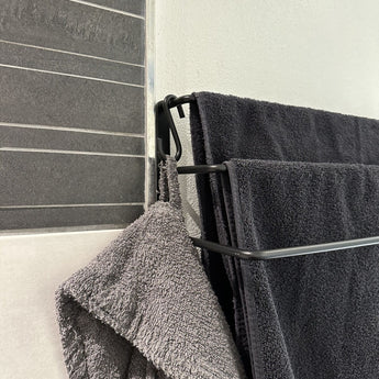 Torka dina handdukar på ett elegant och ändå funktionellt ställ. Köp krokar och skapa plats för din morgonrock, plattång, hårtork, en liten korg eller liknande.