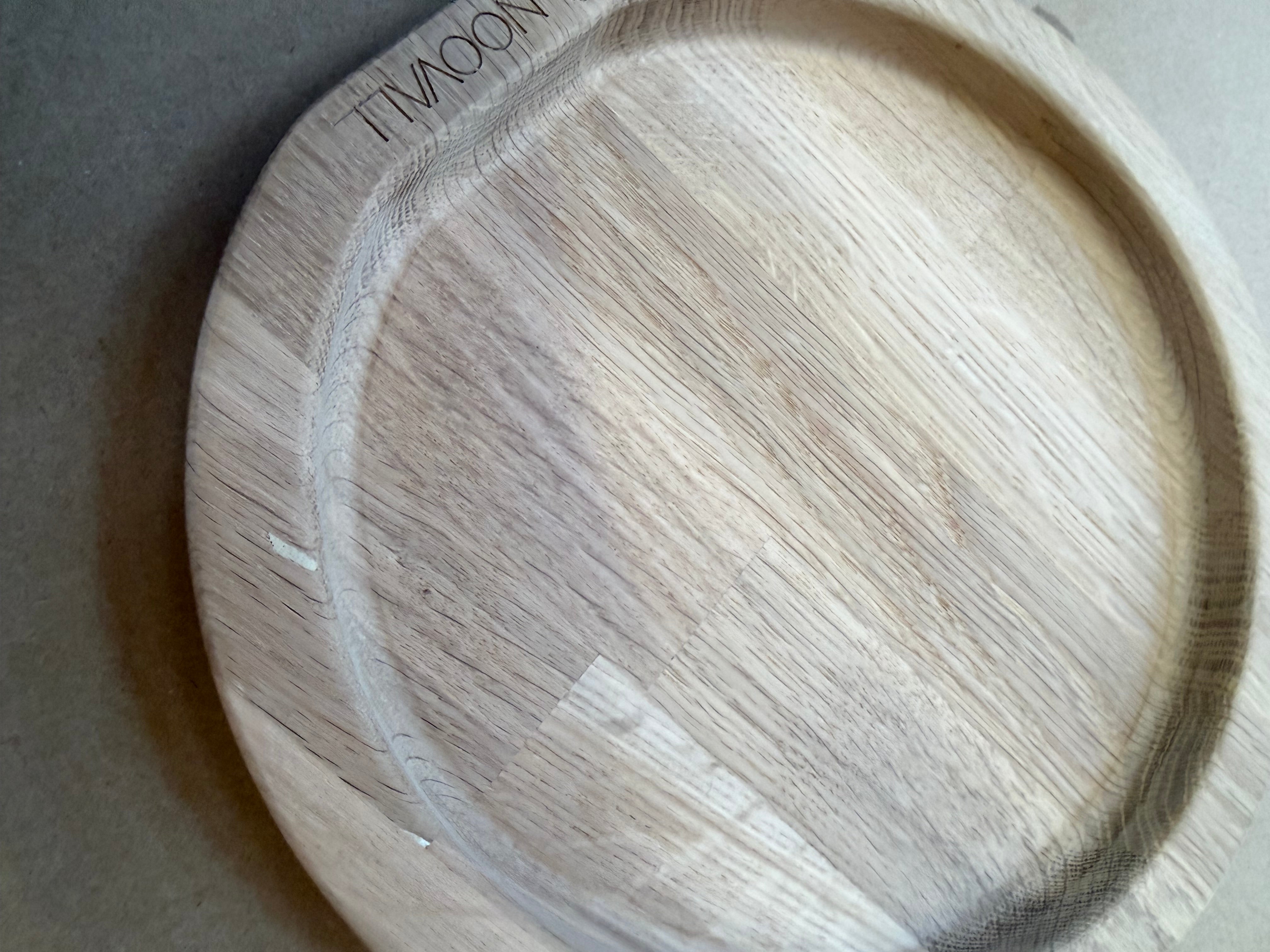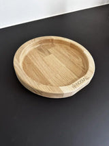 Rund bakke udarbejdet i egetræ.