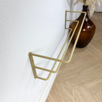 Væghængt skoholder (92 cm.) i Guld, udarbejdet stål og er efterfølgende overfladebehandlet med resultat af en slidstærk overflade, med en smuk finish.